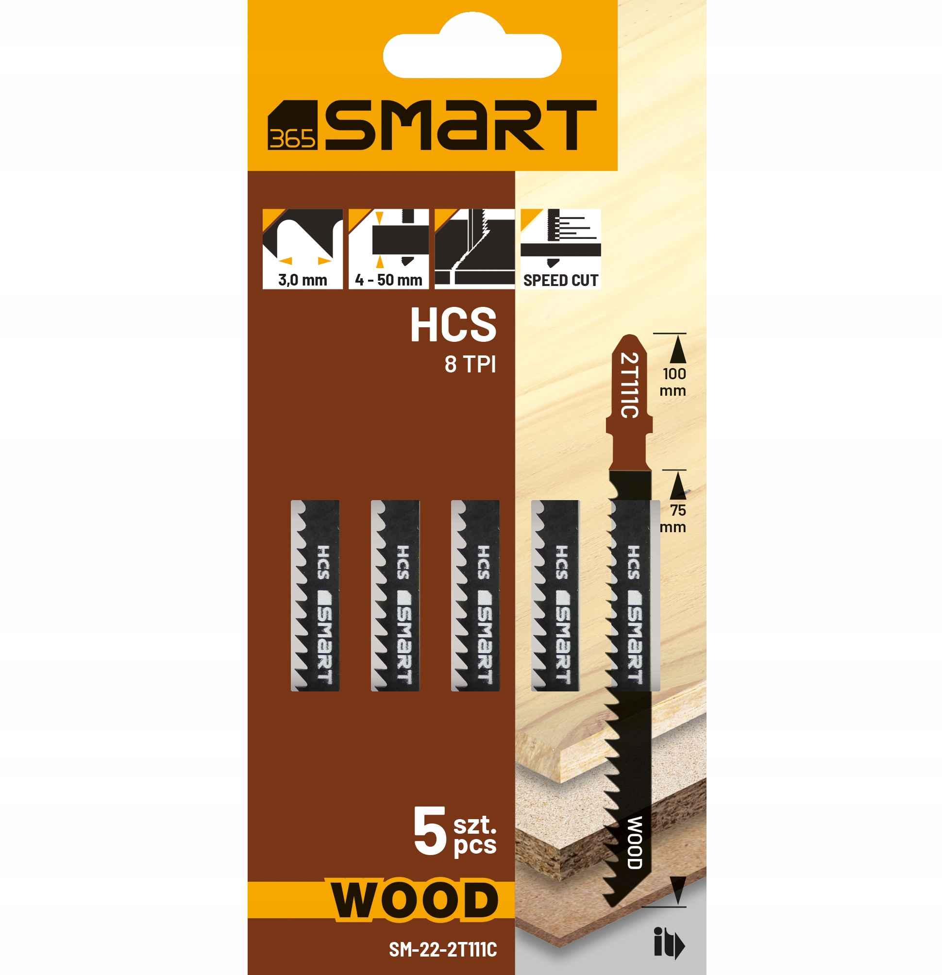SMART365 SM-22-2T111C – Brzeszczoty HCS do wyrzynarek 8 TPI 5 szt